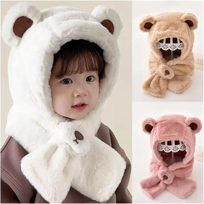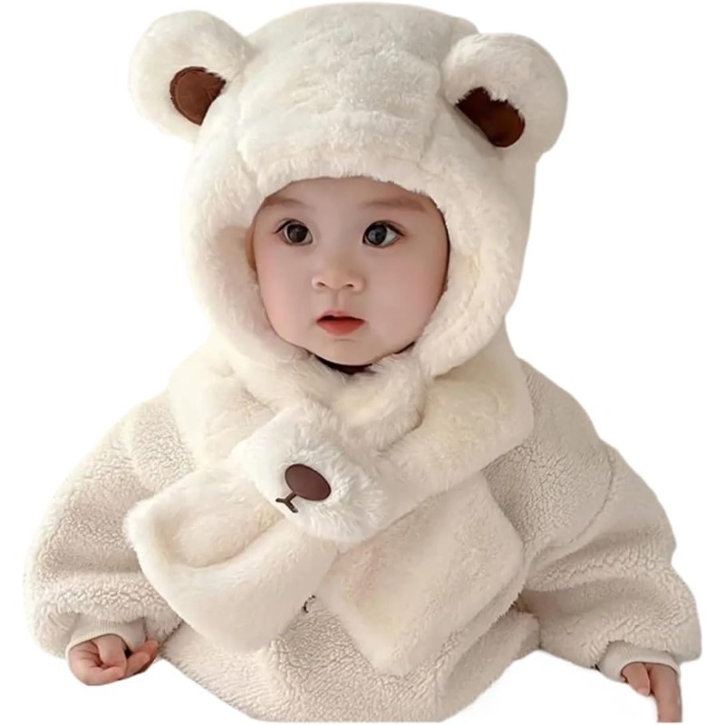 This winter hood features a charming one-piece design that combines a hat and scarf in one. It keeps your baby warm from head to neck while adding a cute winter style to any outfit.