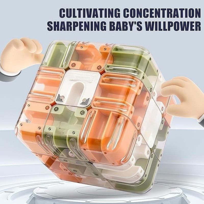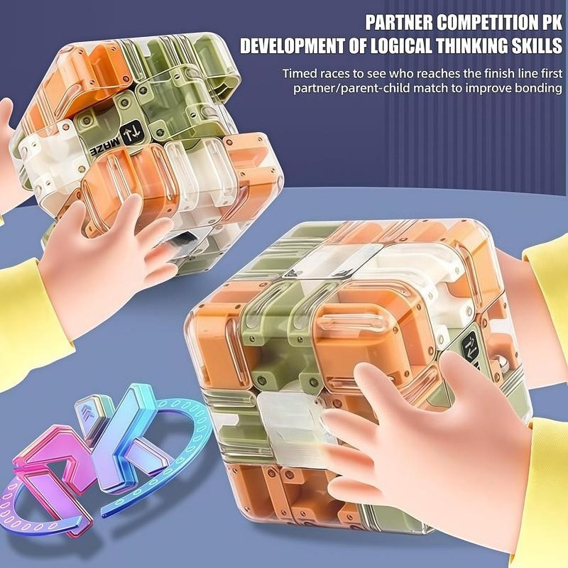 On the basis of a traditional maze cube, this version adds longer tracks, smoother corners, and a redesigned layout to increase difficulty and replay value. The transparent shell lets players observe the route clearly while planning the next move, turning every round into a fresh brain workout.