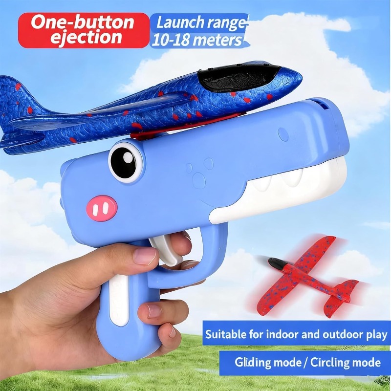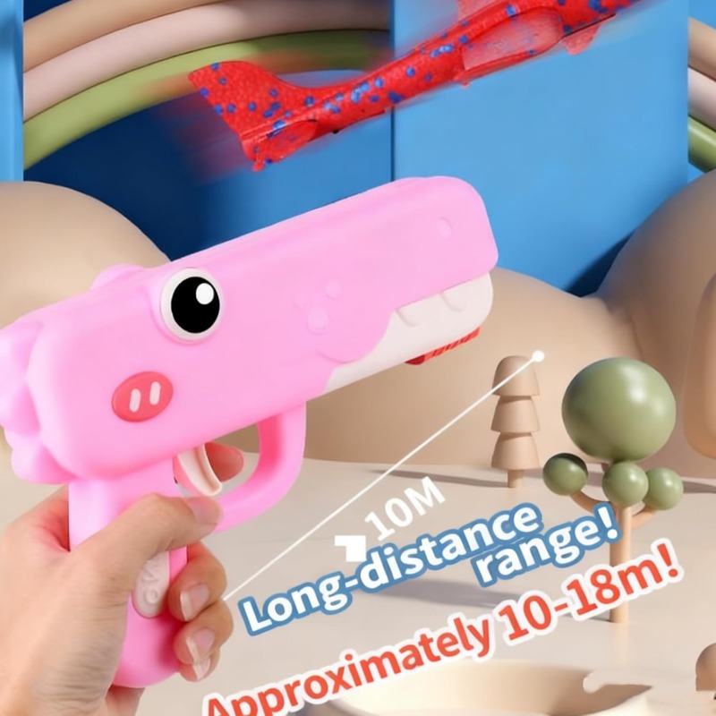 Turn every backyard into a dinosaur airfield! This playful launcher features a cute cartoon dinosaur design that instantly catches kids’ eyes. Simply load the foam airplane on top, pull the trigger, and watch the “dino” catapult the plane into the sky. Each launch turns into an exciting mini adventure that keeps children running, laughing, and playing away from screens.