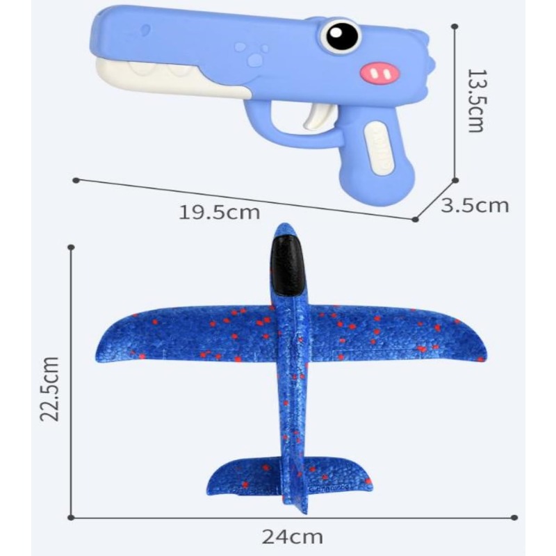 The dinosaur launcher measures approximately 19.5 × 13.5 × 3.5 cm (about 7.7 × 5.3 × 1.4 in), while the foam airplane spans about 24 × 22.5 cm (about 9.4 × 8.9 in). Both are easy for kids to hold, carry, and operate on their own, making this set ideal for parks, gardens, playgrounds, beaches, and more.