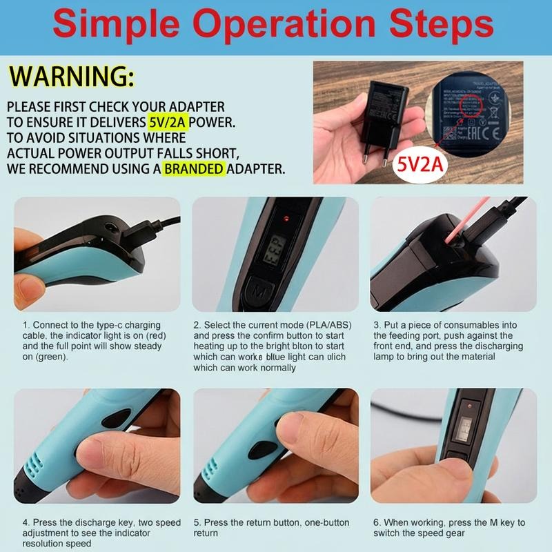 Uses eco-friendly PLA filament (1.75mm diameter), odorless and safe for kids. Perfect for creative DIY projects.