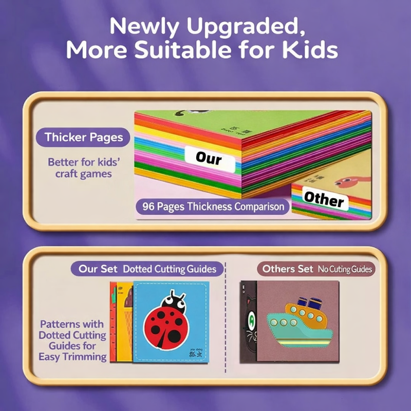 Easy-to-follow dotted cutting lines help beginners gain confidence, while the thicker paper allows for smoother cutting and improved coloring results.
