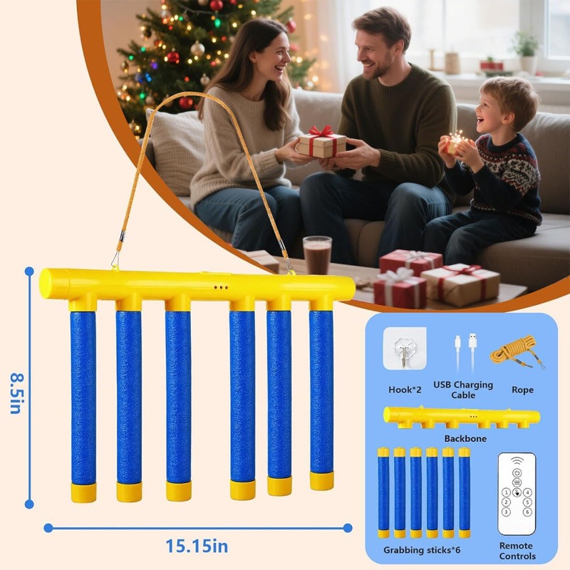 This upgraded remote control stick drop game turns simple grabbing into a thrilling reflex challenge. Colorful foam sticks release randomly from the bar, pushing kids and adults to react quickly and catch them before they fall. It’s a fun, high-energy way to exercise hand–eye coordination and reaction speed at home.